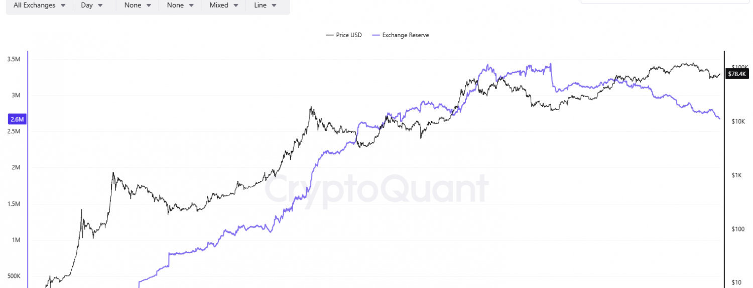 The shrinking amount of coins stored on crypto exchanges is also worth monitoring. Just several hours ago, the figure tumbled to a nearly seven-year low of around 2.6 million, suggesting that investors continue to abandon centralized platforms and shift towards self-custody methods. This, in turn, reduces immediate selling pressure.
